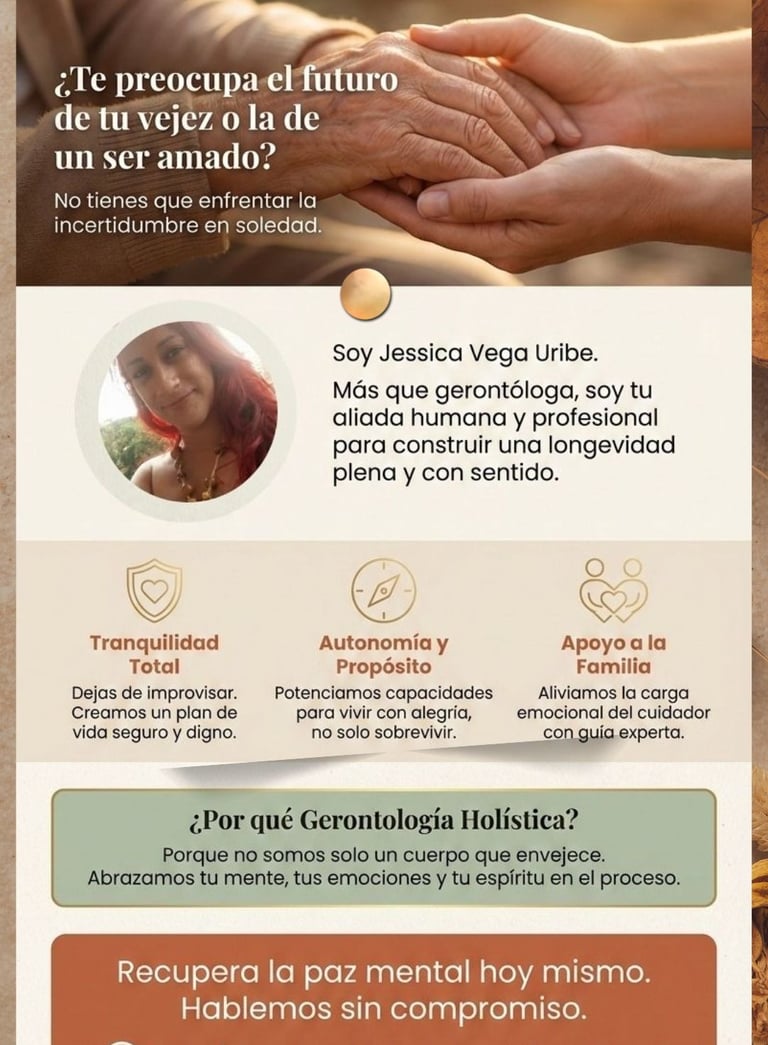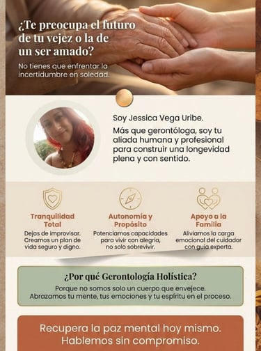 Acompaño procesos de envejecimiento desde la ciencia, la empatía y la dignidad humana.
